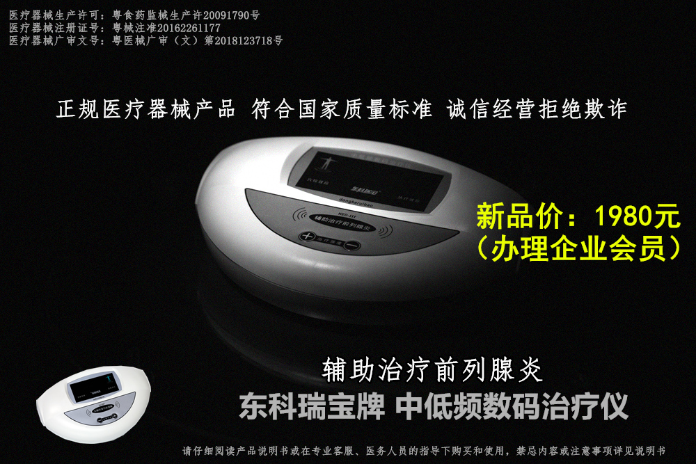 東科瑞寶牌前列腺治療儀器-中低頻數(shù)碼治療儀<家用系列/醫(yī)用系列>,為輔助治療前列腺炎等疾病專 用泌尿外科男科治療儀器設(shè)備,屬于二類醫(yī)療器械產(chǎn)品,東科瑞寶品 牌前列腺治療儀器設(shè)備及配件耗材產(chǎn)品全國尋求線上電商、微商等網(wǎng)絡(luò)渠道商合作,線下實體門店、藥房、醫(yī)院、門診等合作商,廠家品 牌提供授權(quán)及其他全套產(chǎn)品正規(guī)合法資質(zhì),可低門檻試銷,更多產(chǎn)品詳情可電話咨詢我們:400-6655292 詳細(xì)了解。