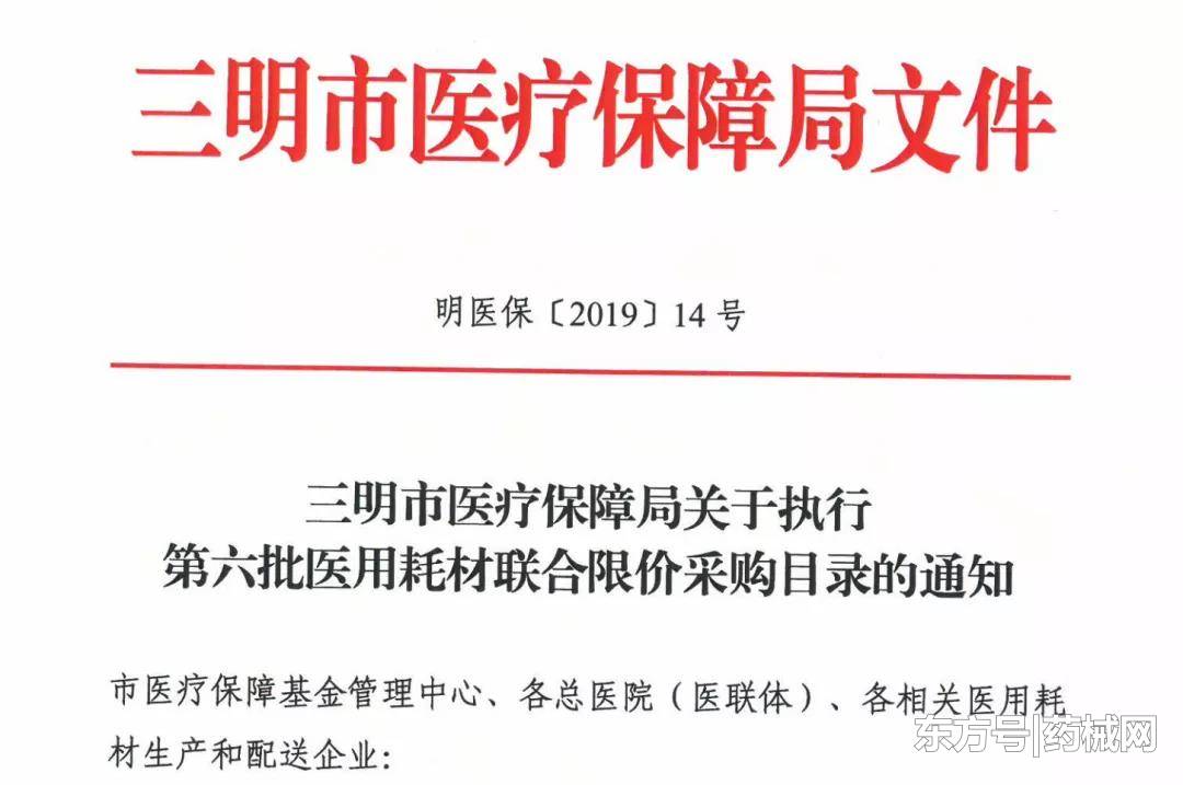 《三明市醫(yī)療保障局關(guān)于執(zhí)行第六批醫(yī)用耗材聯(lián)合限價(jià)采購目錄的通知》