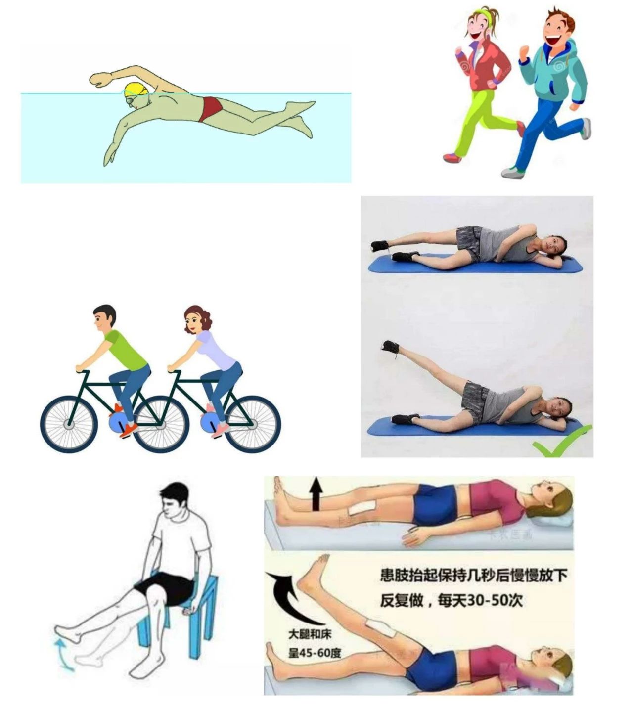 “練”:建議游泳、慢跑、散步等運(yùn)動(dòng),同時(shí)應(yīng)注重膝關(guān)節(jié)周圍肌肉的鍛煉。
