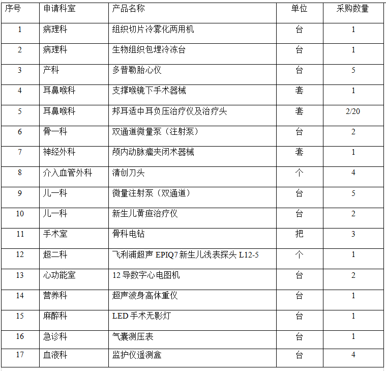 我院擬對以下醫(yī)療器械進行采購,請符合條件的供應(yīng)商報名: