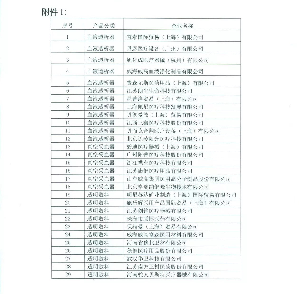 采購產(chǎn)品為血液透析器、真空采血器和透明敷料,還公布了邀請參加通氣會的相關(guān)企業(yè)代表,如下圖: