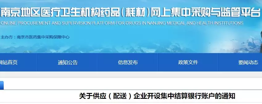 明確要求南京全市各定點(diǎn)醫(yī)藥機(jī)構(gòu)的醫(yī)用耗材及藥品收支,須納入市醫(yī)藥集中采購保障中心設(shè)立的專門賬戶集中結(jié)算管理。按照全市統(tǒng)一部署和安排,請(qǐng)各企業(yè)對(duì)應(yīng)各自供貨的省、市屬三級(jí)醫(yī)療機(jī)構(gòu)結(jié)算賬戶銀行,于9月30日前開設(shè)醫(yī)用耗材及藥品收支專門賬戶、辦理結(jié)算系統(tǒng)專用CA。