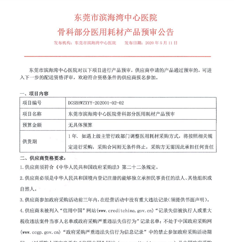 膝關(guān)節(jié)支具、前臂夾板、指骨夾板、撓骨夾板等骨科耗材預(yù)審中標(biāo)公告【廣東東莞市濱海灣中心醫(yī)院】