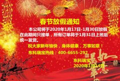 春節(jié)放假通知 本公司將于2020年1月17日-1月30日放假 在此期間只接單,所有訂單將于1月31日上 班后統(tǒng)一發(fā)貨。 春節(jié)期間祝大家新年愉快,身體健康 ,萬(wàn)事如...